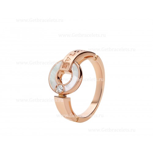 BVLGARI BVLGARI Bague ajourée en or rose 18 carats avec éléments en nacre et diamant rond taille brillant
