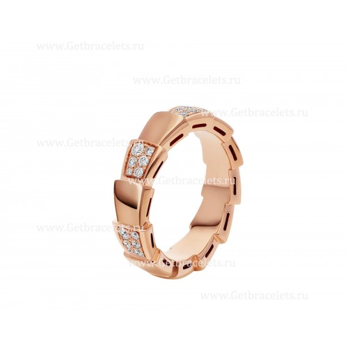 Bague serpenti Viper moyenne BVLGARI en or rose 18 carats avec diamants demi-pavés