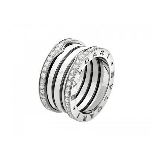 Bague Bvlgari B.zero1 à 4 bandes en or blanc avec pavé de diamants sur les bords