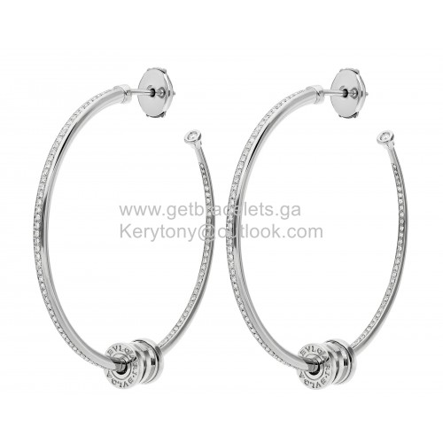 Boucles d'oreilles créoles Bvlgari B.zero1 en or blanc avec imitation pavé de diamants