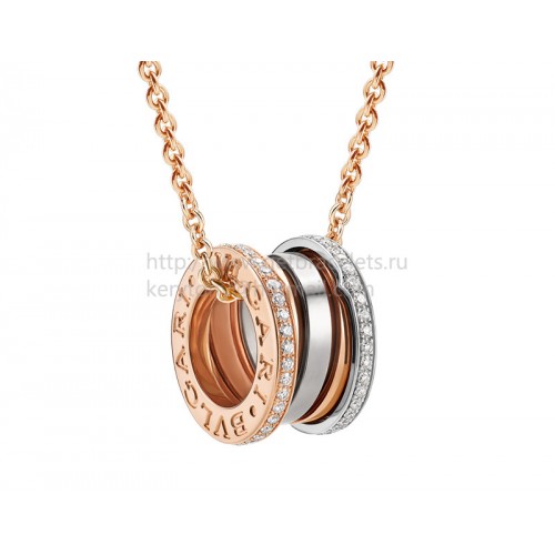Collier labyrinthe Bvlgari B.zero1 avec pendentif en or rose et blanc serti de diamants pavés