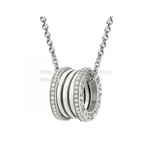 Pendentif Bvlgari B.zero1 avec chaîne en or blanc avec pavé de diamants sur les bords