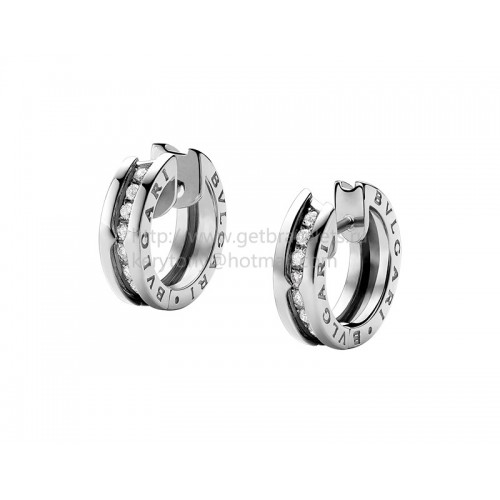 Bvlgari B.zero1 Petites boucles d'oreilles créoles en or blanc et pavé de diamants