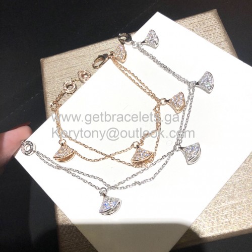 Bracelet double chaîne Bvlgari Divas Dream 4 motifs avec diamants complets en or rose et or blanc