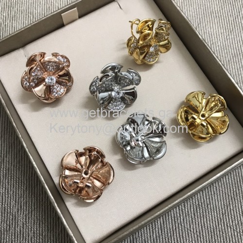 Bvlgari Divas Dream Flower Boucles D'oreilles Avec Diamants Or Blanc-Or Jaune-Or Rose