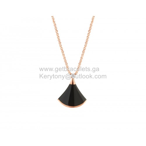 Bvlgari Divas Dream Petit collier avec onyx et 1 diamant copie en or rose