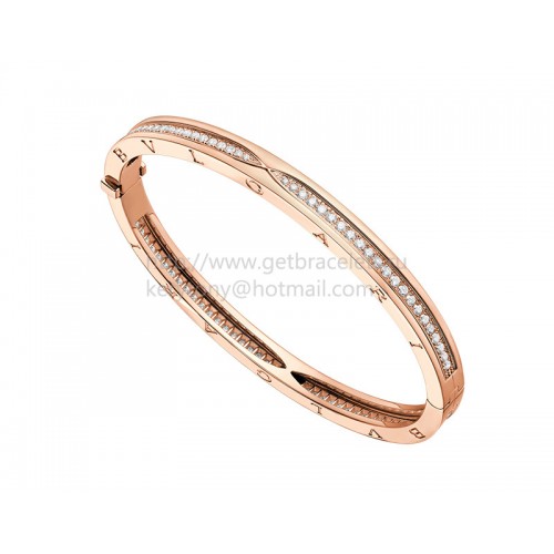 Bracelet jonc Bvlgari B.zero1 en or rose avec pavé de diamants