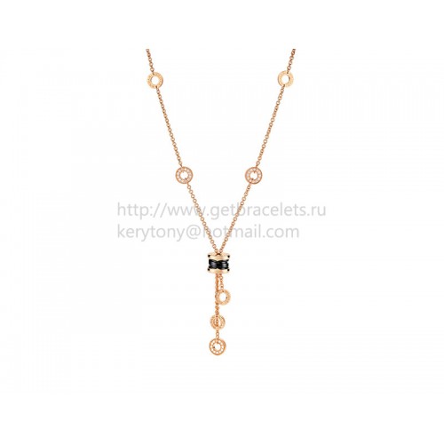 Collier Bvlgari B.zero1 en or rose avec céramique noire et pavé de diamants