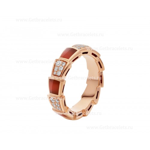 Bague Bvlgari Serpenti Viper de taille moyenne en or rose 18 carats avec éléments de cornaline et pavé de diamants