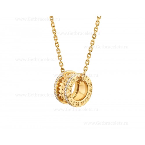 Collier Bvlgari B.zero1 Rock avec pendentif en or jaune 18 carats avec diamants pavés en spirale cloutés sur les bords