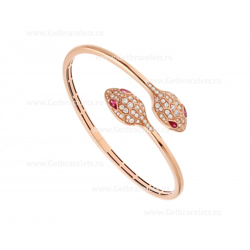 Bracelet Bvlgari Serpenti en or rose 18 carats serti d'yeux en rubellite et pavé de diamants