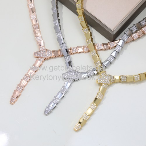 Collier Bvlgari Serpenti avec pavé complet de diamants Or rose-Or jaune-Or blanc