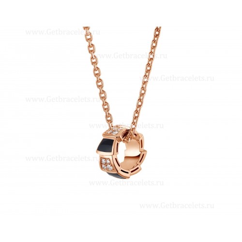 Collier Bvlgari Serpenti Viper en or rose 18 carats avec éléments en onyx et pavé de diamants sur le pendentif