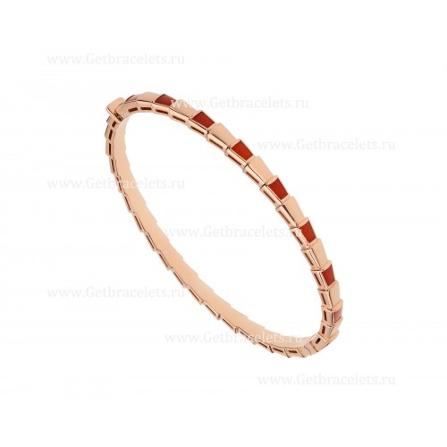 Bracelet jonc fin Bvlgari Serpenti Viper en or rose 18 carats serti d'éléments de cornaline