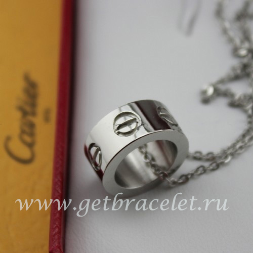 Ce collier est composé d'une bague Cartier LOVE et d'une chaîne en or blanc, sculptée de la forme des vis Cartier et du LOGO Cartier