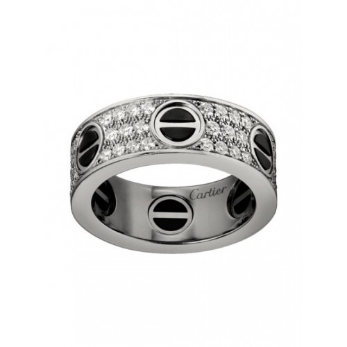 Bague Cartier Love en or blanc 18 carats en céramique noire pavée de diamants