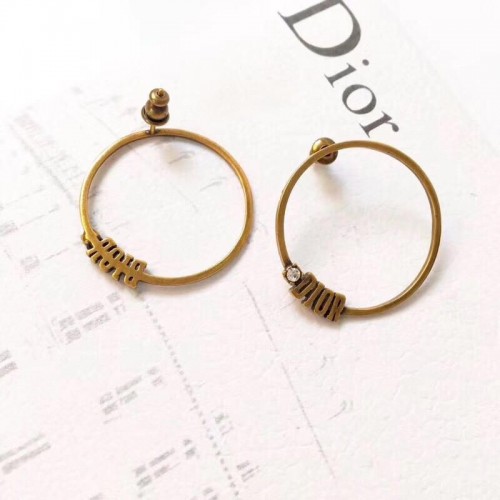 Boucles d'oreilles pendantes cercle en laiton jaune avec logo Dior et diamants à Paris