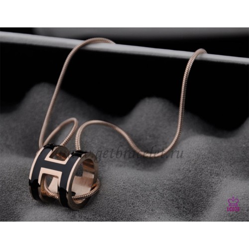 Hermès 3D Pop “H” Collier noir en os de serpent avec logo en or rose