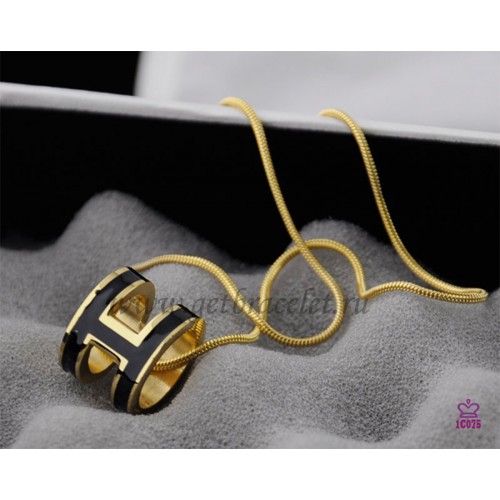 Hermès 3D Pop &#8220;H&#8221; Collier noir en os de serpent avec logo en or jaune