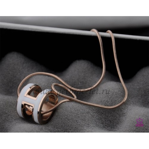Hermès 3D Pop “H” Collier blanc en os de serpent avec logo en or rose