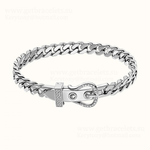 Bracelet Hermes Boucle Sellier en or blanc avec diamants pour femme