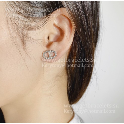 Boucles d'oreilles Hermes Chaine DAncre avec pavé de diamants or rose/or blanc