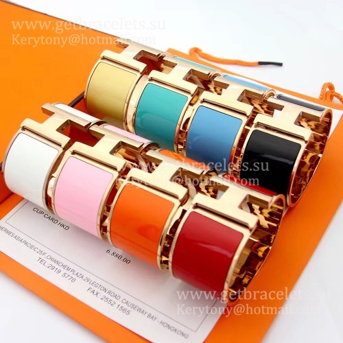 Hermes Clic Clac H Bracelet en émail extra large Or rose GM 33MM Luxe