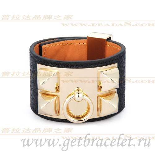 Hermes Collier de Chien Bracelet Noir Avec Or