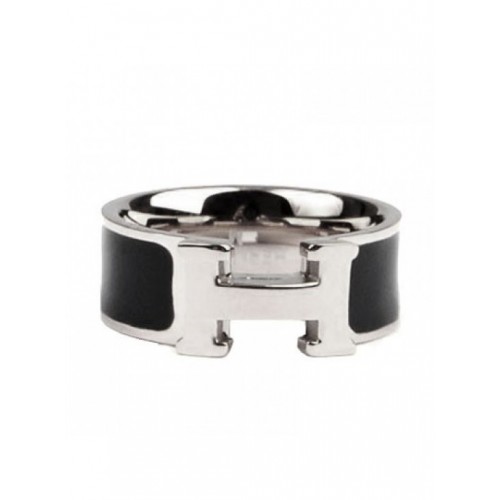 Bague Hermes Email Clic H en or blanc 18 carats avec noir