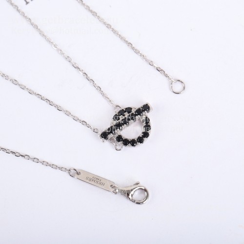 Collier Hermes Finesse avec pierres précieuses spinelles noires en or blanc