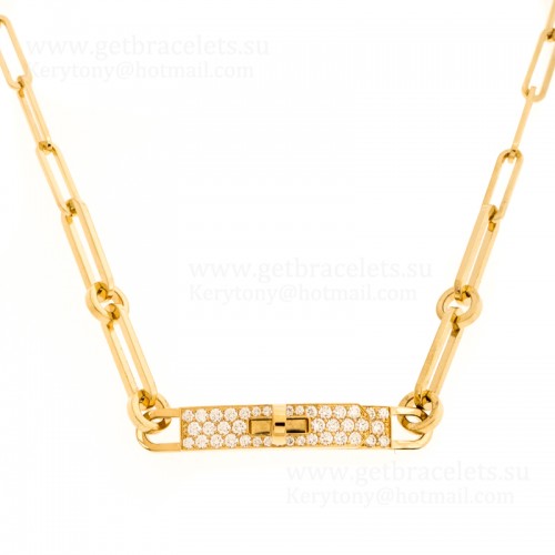 Hermes Kelly Chaine Collier ras du cou à maillons de chaîne en diamant avec diamants Argent/Or jaune/Or rose