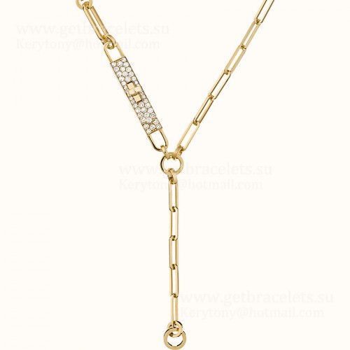 Collier Hermes Kelly Chaine Lariat avec diamants or rose/argent