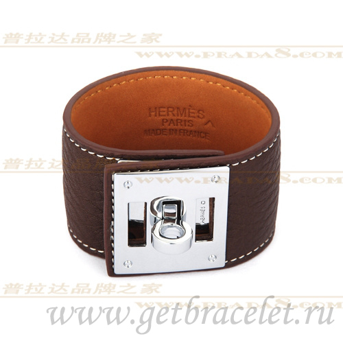 Bracelet Hermes Kelly Dog Marron Avec Argent