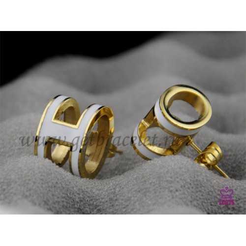 Boucles d'oreilles Hermes Pop H blanches en or jaune