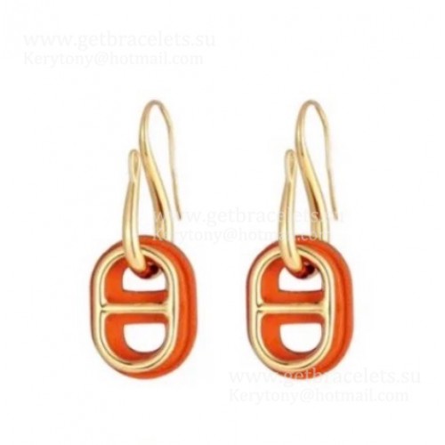 Hermes Swift OMaillon Boucles d'oreilles en or jaune avec cuir Onange/Blanc