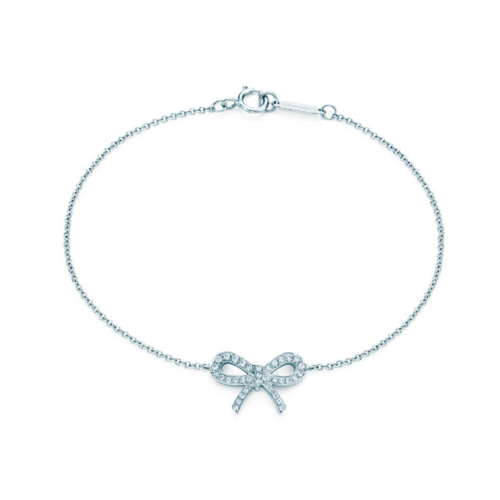 Tiffany Bow Or Rose Bracelet Argent Pendentif Diamants Bijoux
