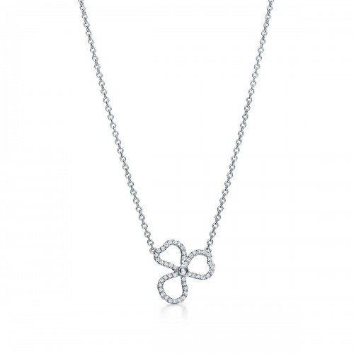 • Tiffany Co Paper Flowers Trèfle à trois feuilles Fleur ouverte Pendentif Diamants Collier