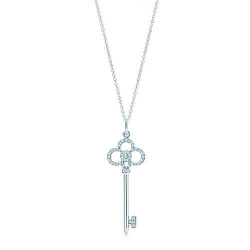 Tiffany Keys Couronne Clé Pendentif Faux Avec Diamants Sterling Argent Chaîne Collier Bijoux UK Vente