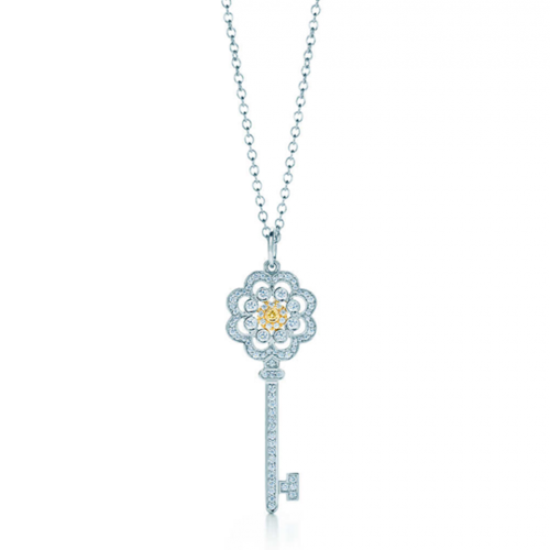 • Tiffany Keys Rose Key Pendentif Collier Diamants Argent Sterling LA Vente