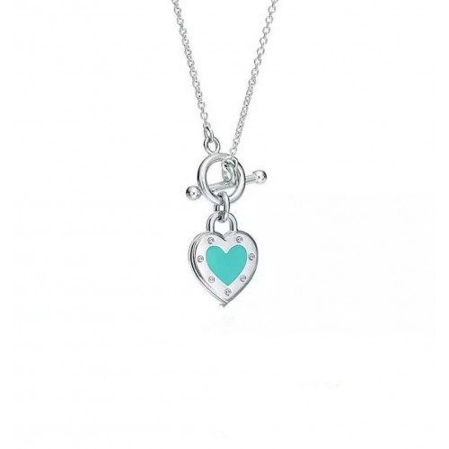 Tiffany Return To Turquoise Love Heart Toggle Pendentif Bleu Émail Argent Femmes Collier