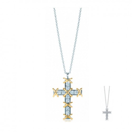 • Tiffany Schlumberger Dix Pierre Croix Pendentif Collier Diamants America Lady