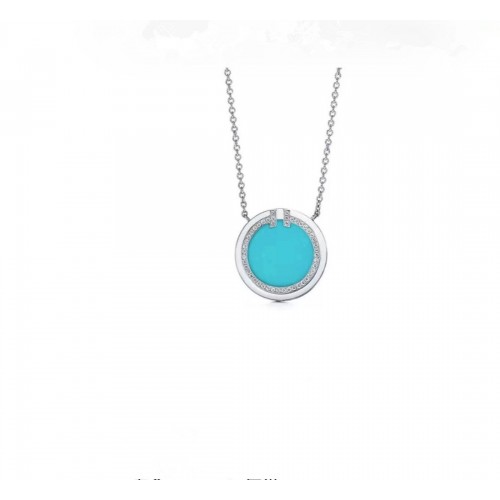 Collier pendentif cercle turquoise Tiffany T argent diamants HK