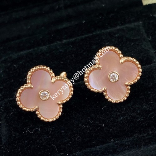 • Van Cleef Arpels Boucle d'oreille Alhambra en or rose avec nacre rose et diamants