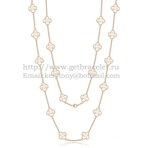 • Van Cleef Arpels Collier Alhambra Or Rose 20 Motifs Avec Nacre Blanche