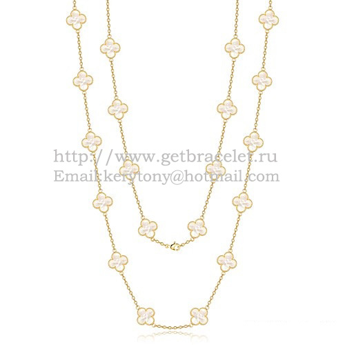 • Van Cleef Arpels Collier Alhambra Or Jaune 20 Motifs Avec Nacre Blanche