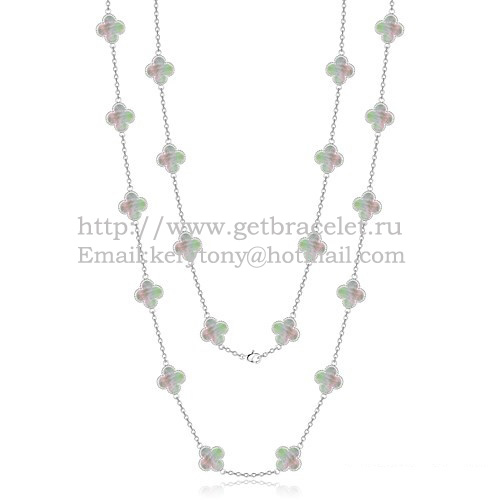 • Van Cleef Arpels Collier Alhambra Or Blanc 20 Motifs Avec Nacre Grise