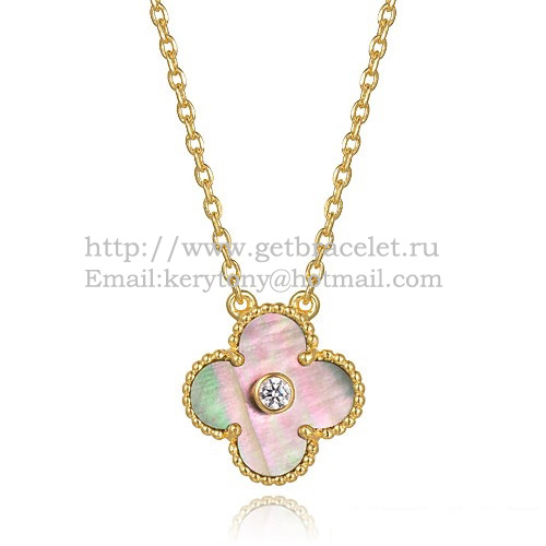 Van Cleef Arpels Pendentif Alhambra en or jaune avec diamants ronds en nacre grise