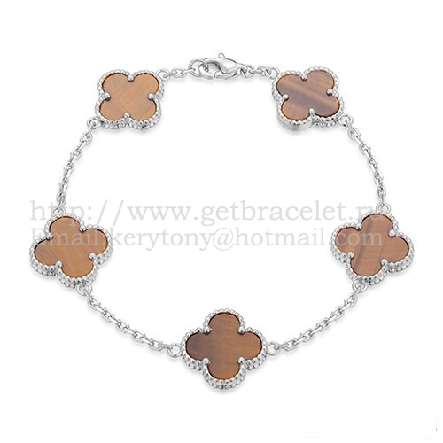 Van Cleef Arpels Bracelet Alhambra 5 Motifs Or Blanc Avec Oeil De Tigre Nacre