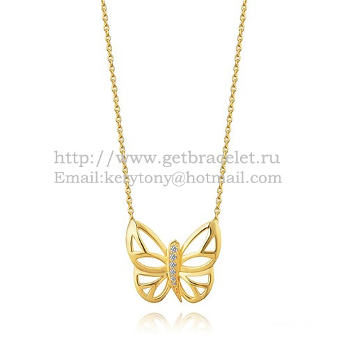 Cette série d'œuvres interprète et transforme le papillon doux, élégant et poétique. Sur cet élégant pendentif papillon, les diamants ronds sculptés et incrustés d'ailes en or se complètent mutuellement.