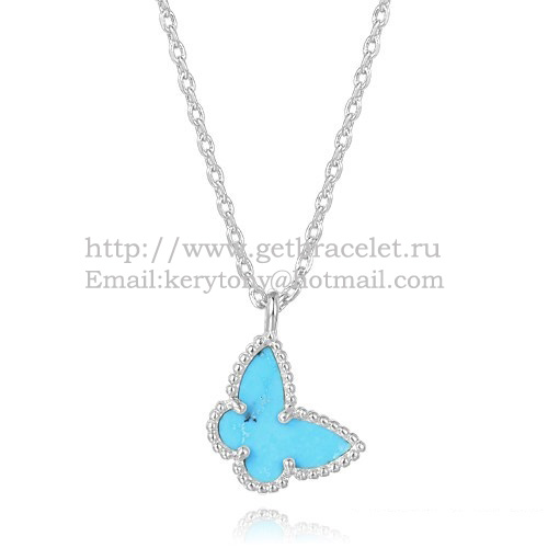 Van Cleef Arpels Collier papillon Lucky Alhambra en or blanc avec nacre turquoise